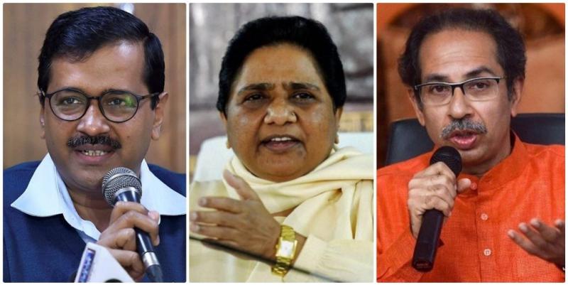 عآپ چیف اروند کیجریوال، بی ایس پی سپریمو مایاوتی اور شیوسینا چیف ادھو ٹھاکرے (فوٹو : پی ٹی آئی)