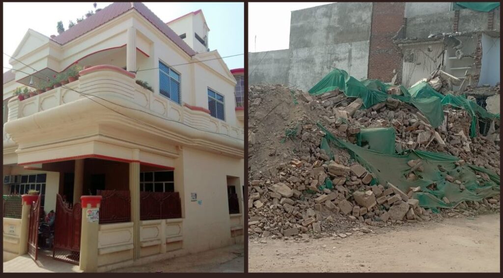 پروین فاطمہ کا گھر بلڈوزر کارروائی سے پہلے اور بعد میں۔