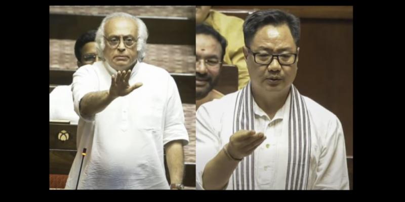 کانگریس لیڈر جئے رام رمیش (بائیں) اور مرکزی وزیر کرن رجیجو۔ (تصویر: پی ٹی آئی)
