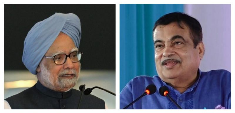 منموہن سنگھ اور نتن گڈکری۔ (تصویر: پی ٹی آئی/فیس بک)