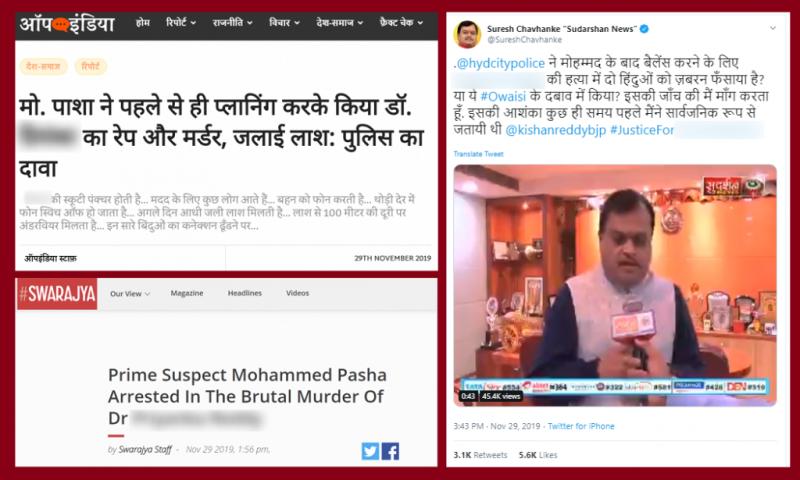 فیک نیوز راؤنڈ اپ: جیسے ہی ویٹنری ڈاکٹر کے ریپ اور قتل کی خبر میڈیا میں آئی، بی جے پی کے لیڈروں، حامیوں اور میڈیا کے ایک مخصوص حصے نے اس کو فرقہ وارانہ رنگ دینا شروع کر دیا جس میں سیاسی لیڈران سے لےکر آئی اے ایس افسر تک شامل تھے۔ سب سے بڑی حماقت اس پروپیگنڈہ میں یہ کی گئی کہ بھگوا پروپیگنڈہ عام کرنے والوں نے مظلوم کی شناخت کو بھی سوشل میڈیا میں واضح کر دیا اور اس کے نام اور تصویروں کے ساتھ مسلمانوں سے اپنی نفرتوں کو عام کیا۔