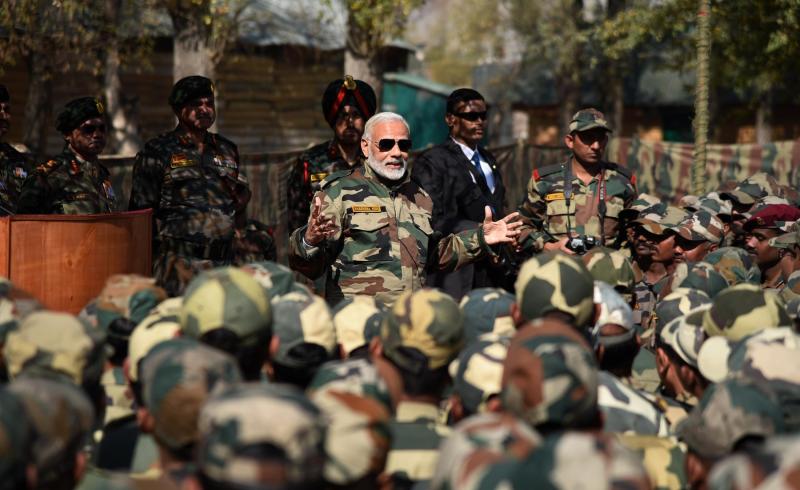 کشمیر میں فوج اور بی ایس ایف جوانوں کے ساتھ وزیر اعظم نریندر مودی (فائل فوٹو، بہ شکریہ: پی آئی بی)