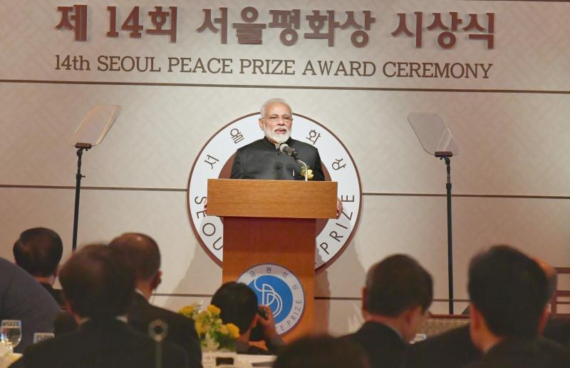جنوبی کوریا میں ایوارڈ پروگرام میں وزیر اعظم نریندر مودی (فوٹو بشکریہ : پی آئی بی)