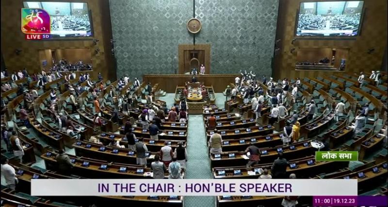 19 دسمبر 2023 کو لوک سبھا۔ (اسکرین گریب بہ شکریہ: سنسد ٹی وی)