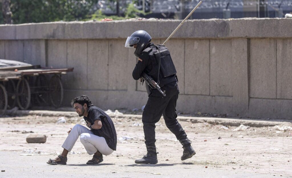 نوئیڈا: اتر پردیش کے گوتم بدھ نگر ضلع کے نوئیڈا میں اجرت بڑھانے کے مطالبے پر احتجاج کے دوران ایک مزدور کوپیٹتا سیکورٹی اہلکار، سوموار، 13 اپریل 2026۔ (پی ٹی آئی فوٹو)