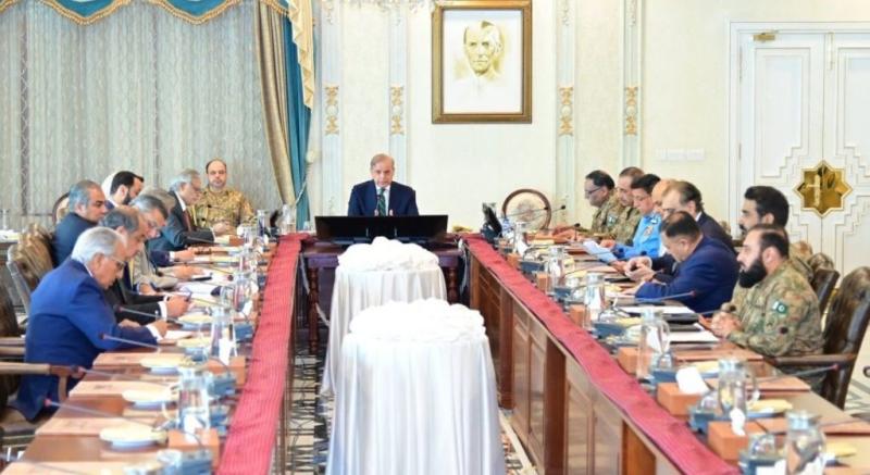 پاکستان کے وزیر اعظم محمد شہباز شریف اسلام آباد میں قومی سلامتی کمیٹی (این ایس سی) کے اجلاس کی صدارت کرتے ہوئے۔