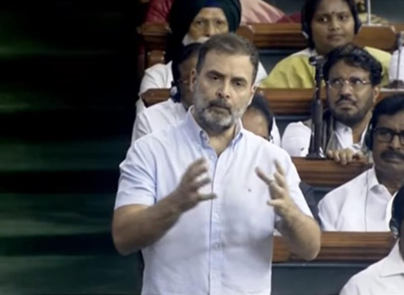راہل گاندھی بدھ کو لوک سبھا میں تحریک عدم اعتماد پر اظہار خیال کر تے ہوئے۔ (فوٹو بہ شکریہ: یوٹیوب اسکرین گریب)