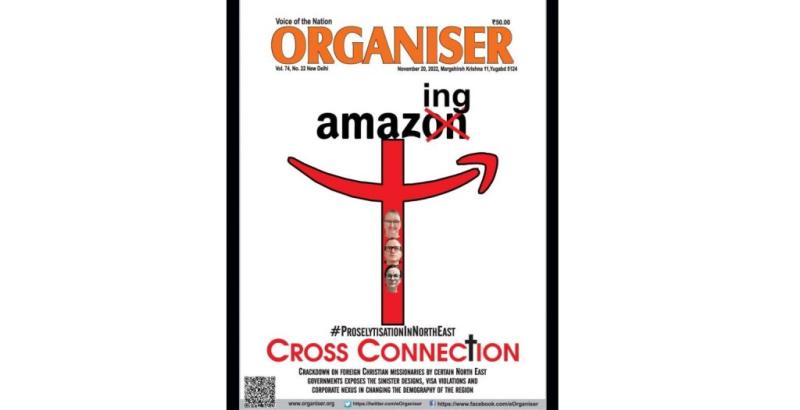 راشٹریہ سویم سیوک سنگھ سے وابستہ میگزین آرگنائزرنے اپنے تازے شمارے کی کور اسٹوری میں ای– کامرس کمپنی ایمیزون پر ہندوستان کی شمال–مشرقی ریاستوں میں تبدیلی مذہب کے لیے فنڈنگ مہیاکرنے کا الزام لگایا ہے۔ کمپنی نے ان الزامات کی تردید کی ہے۔