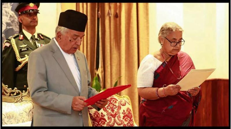 سشیلا کارکی کو جمعہ (12 ستمبر) کی رات صدر رام چندر پوڈیل نے عہدے اور رازداری کا حلف دلایا۔ (تصویر بہ شکریہ: سوشل میڈیا)