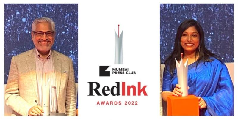 Congratulations 𝗦𝗶𝗱𝗱𝗵𝗮𝗿𝘁𝗵 𝗩𝗮𝗿𝗮𝗱𝗮𝗿𝗷𝗮𝗻 & 𝗩𝗮𝗶𝗯𝗵𝗮𝘃 𝗪𝗮𝗹𝘂𝗻𝗷 on being the 𝗝𝗢𝗜𝗡𝗧 𝗪𝗜𝗡𝗡𝗘𝗥𝗦 of the #RedInkAwards2022 for the category: 𝗣𝗢𝗟𝗜𝗧𝗜𝗖𝗦 (𝗣𝗥𝗜𝗡𝗧).#VaibhavWalunj–@indiejmag | @svaradarajan–@TheWire pic.twitter.com/8Z28RgWxKy