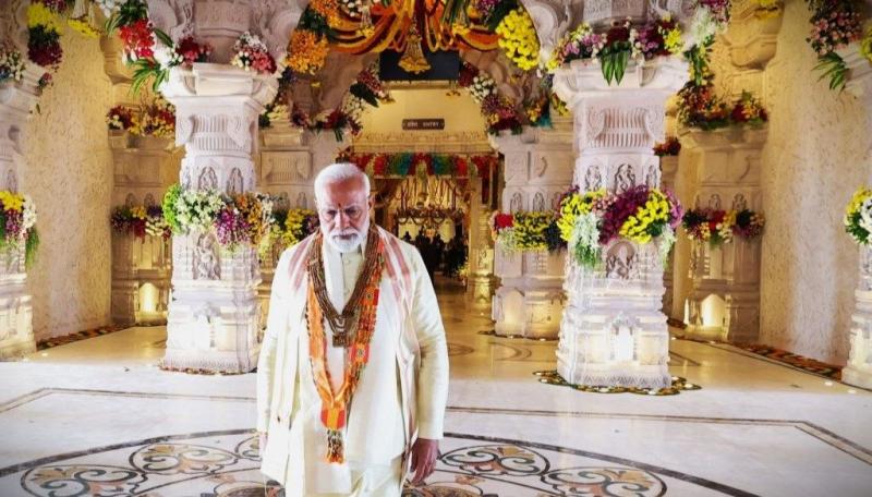 ایودھیا میں رام مندر کے پران—پرتشٹھا کی تقریب میں وزیر اعظم نریندر مودی۔ (تصویر بہ شکریہ: facebook/@BJP4India)
