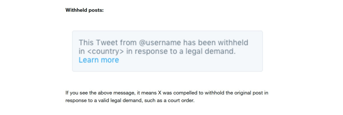 اس بار ایکس کی جانب سے جاری ایک ٹیمپلیٹیڈ نوٹس میں پوسٹ کو روکنے کی وجہ  کے طور پر ’قانونی مطالبے‘ کا حوالہ دیا گیا ہے۔ تاہم، ایکس کی جانب سےاس قانونی مطالبے کی مختصر وضاحت میں کسی خاص وجہ جیسے ’عدالتی حکم‘ وغیرہ کا ذکر نہیں کیا گیا، جو ادارتی لحاظ سے مفید ہو ۔